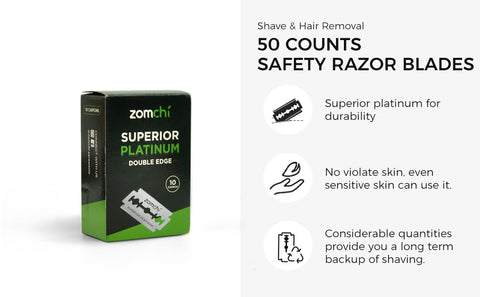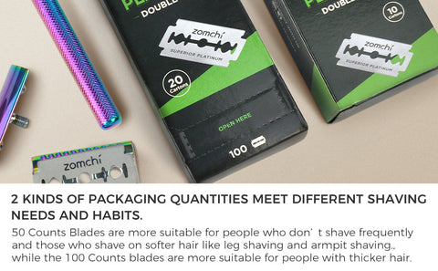 【SUPIRIOR PLATNUM FOR DURABLITY】With Exquisite workmanship, Zomchi double edge razor blades will not easily rust as they are made of stainless steel with rust-resistant coatings. Besides, its smooth surface makes it easy to wash hair away after shaving.